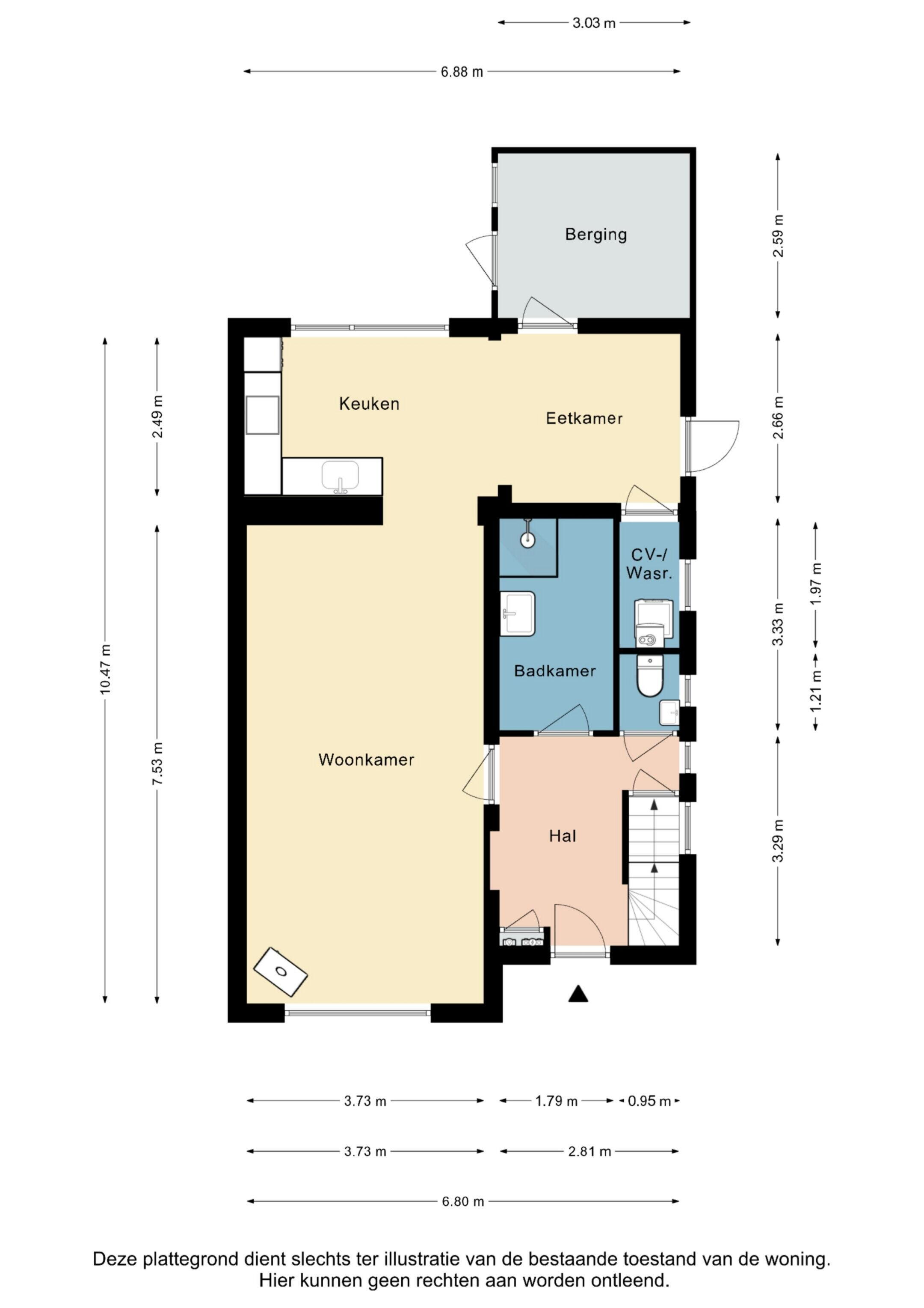 Aangelegde voortuin met parkeermogelijkheid voor twee auto's. Entree voorzijde met toegang tot hal met trapopgang, meterkast, gastentoilet met fonteintje en toegang tot woonkamer en badkamer welke enigszins verouderd is. Woonkamer met een hoog rendement gaskachel en toegang tot de leef keuken in aanbouw. Moderne keuken in hoekopstelling en voorzien van inbouwapparatuur en airco. Toegang tot wasruimte met wasmachine aansluiting en ( huur) cv-ketel (2016) en aangebouwde berging. De achtertuin is omsloten en onderhoudsvrij aangelegd met een achteruitgang. Separate omsloten zij tuin met terras, toegankelijk via keuken en via achtertuin en oprit voortuin.